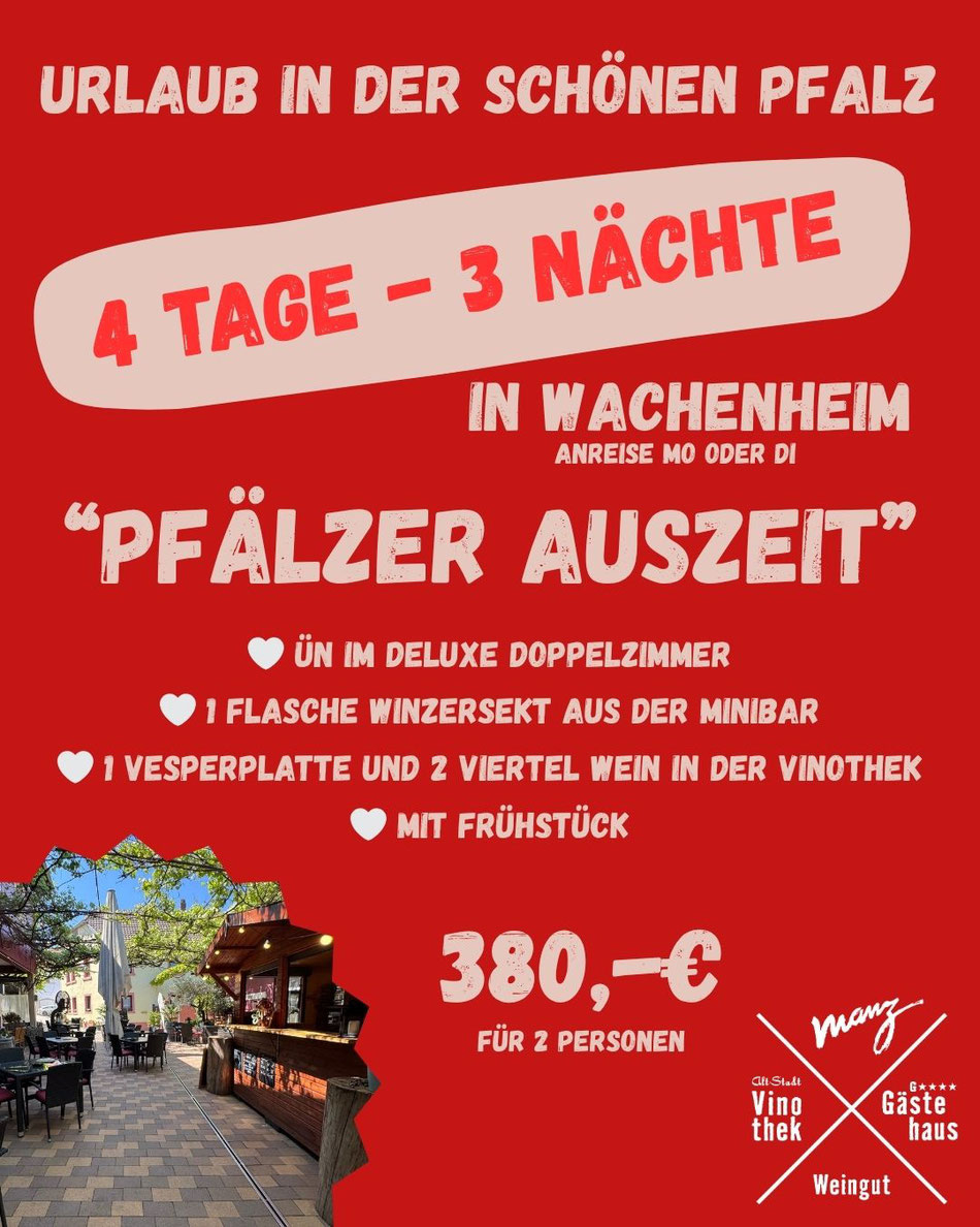Nehmen Sie sich doch eine Auszeit in der schönen Pfalz an der Deutschen Weinstraße.